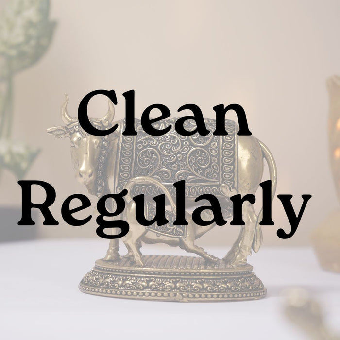 Gently dust Devya’s idol with a soft, dry cloth. For deeper cleaning, use a mild soap solution and dry thoroughly—avoid harsh chemicals or abrasives.